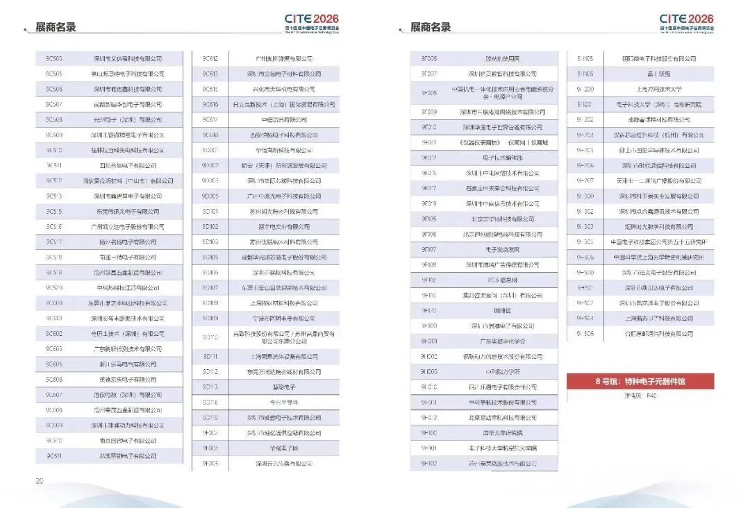 8号馆特种电子元器件馆 参展商名录