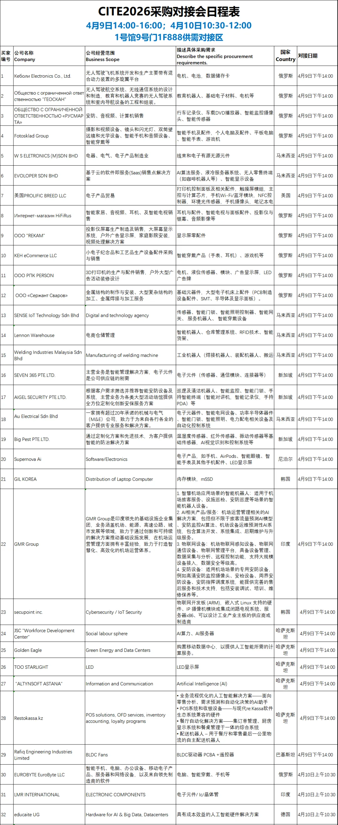 此外,为助力企业拓展国际市场,本届展会特别设立“海外采购供需对接专区”,特邀海外采购商,围绕子元器件、SSD、AI服务器、液冷、工业机器人、扫地机器人、服务型机器人、智能监控摄像头、电脑、智能穿戴、智能硬件、显示屏等200余个重点品类开展“一对一”精准洽谈,切实推动技术合作与贸易落地。等超200个,具体采购需求请阅读下文。