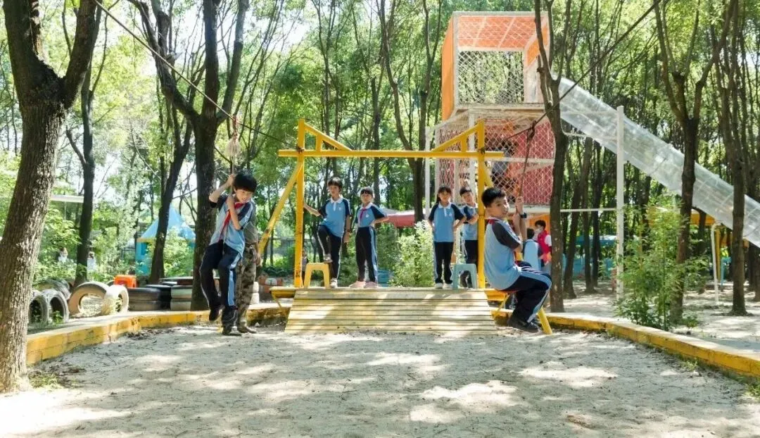 随处可见的平衡秋千、跳跳床、云滑梯等无动力设施,玩法层出不穷,深受孩⼦们的喜爱。