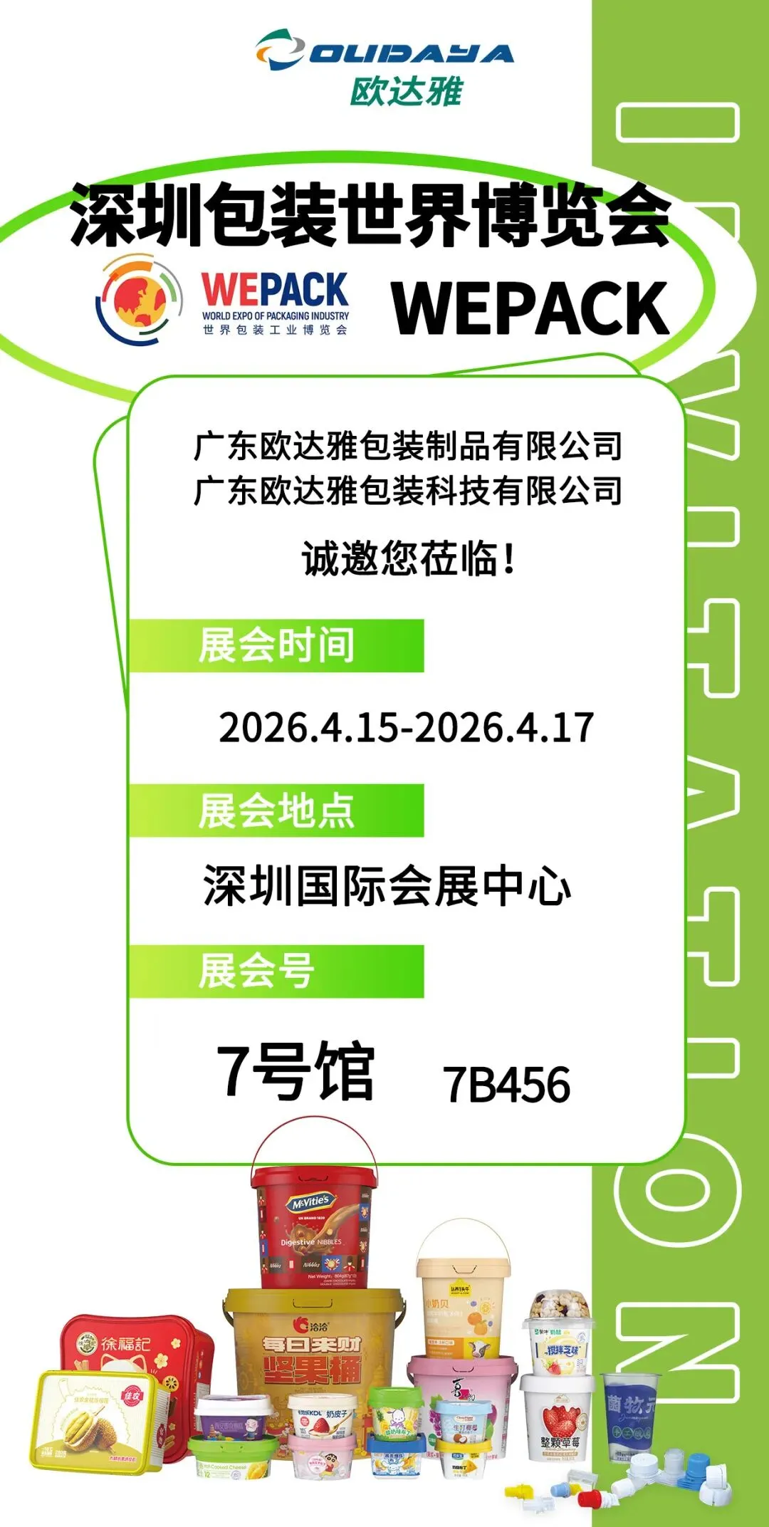 您好!广东欧达雅包装制品有限公司将于2026年4月15-17日参加深圳包装世界博览会WEPACK,期待您的莅临参观。