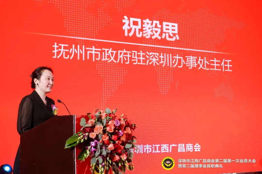 吴自胜在致辞中代表中共广昌县委、广昌县人民政府对商会换届大会的胜利召开、对新当选的会长等一班人表示热烈的祝贺!向在座的各位代表,并通过他们向所有在深圳工作、生活的广昌乡友致以诚挚的问候!向长期以来关心、支持广昌发展的各界朋友表示衷心的感谢!吴自胜说,五载耕耘铸辉煌,乘势扬帆谱新篇。此次商会顺利换届,迎来了新的起点,步入了新的征程。我相信,在新一届商会会长等一班人的带领下,在全体会员的共同努力下,商会必将乘势而上、再创佳绩,不断彰显新时代广昌商人的卓越风采。希望会员争当“实干家”,在事业发展上“更上一层”;希望商会搭建“好娘家”,在服务兴商上“更进一层”;希望大家不忘“常回家”,在情系家乡上“更深一层”。吴自胜表示,商会工作既是服务,也是奉献。希望深圳市广昌商会继续敢为人先、奋勇拼搏,同心向前、外向发展,把商会整体工作推向一个新的阶段,提高到一个新的水平,努力建设成为一流的民间商会。祝毅思在讲话中代表抚州市人民政府驻广东办事处向家乡领导、各位嘉宾、各位企业家的到来,表示由衷的感谢和热烈的欢迎!向再次当选的揭会长、各位副会长和各位理事表示热烈的祝贺!向全体会员表示诚挚的问候!