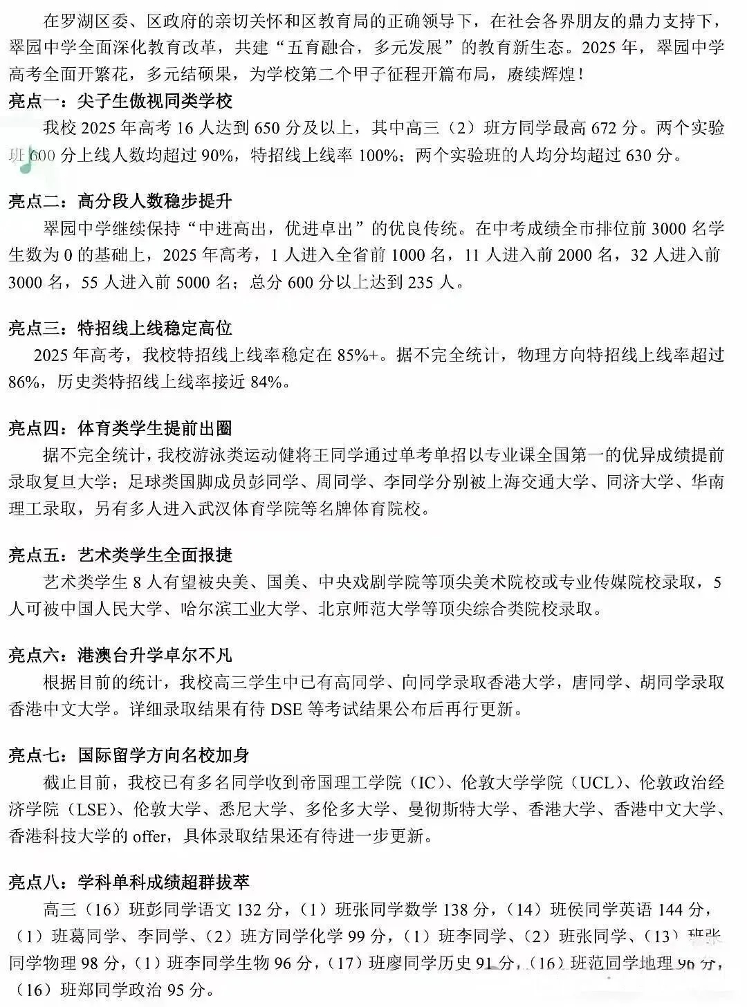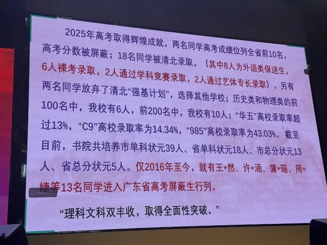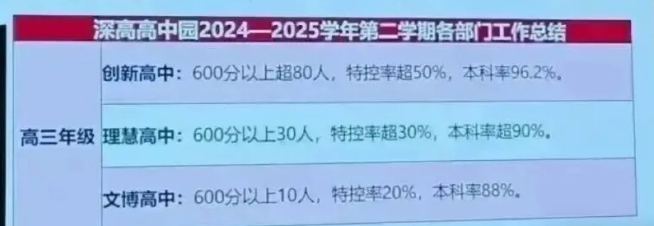 2、本届“国内高考班"学生低进高出,高进优出。2022年本届"国内高考班”学生中考招生录取分数线507分,不少同学当年中考成绩五百分左右,2025年高考成绩超越自我,达到了重点名校录取分数线。