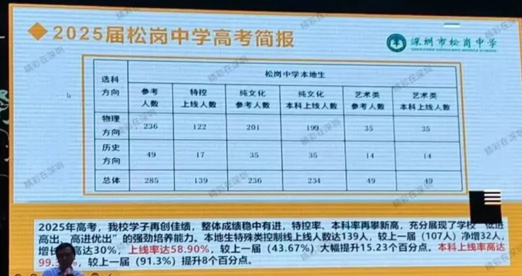网传沙井中学2025年高考,学校整体本科率35%,重点班本科率83%,艺考生本科率100%。600分以上一个物理类620分。历史类最高530+。