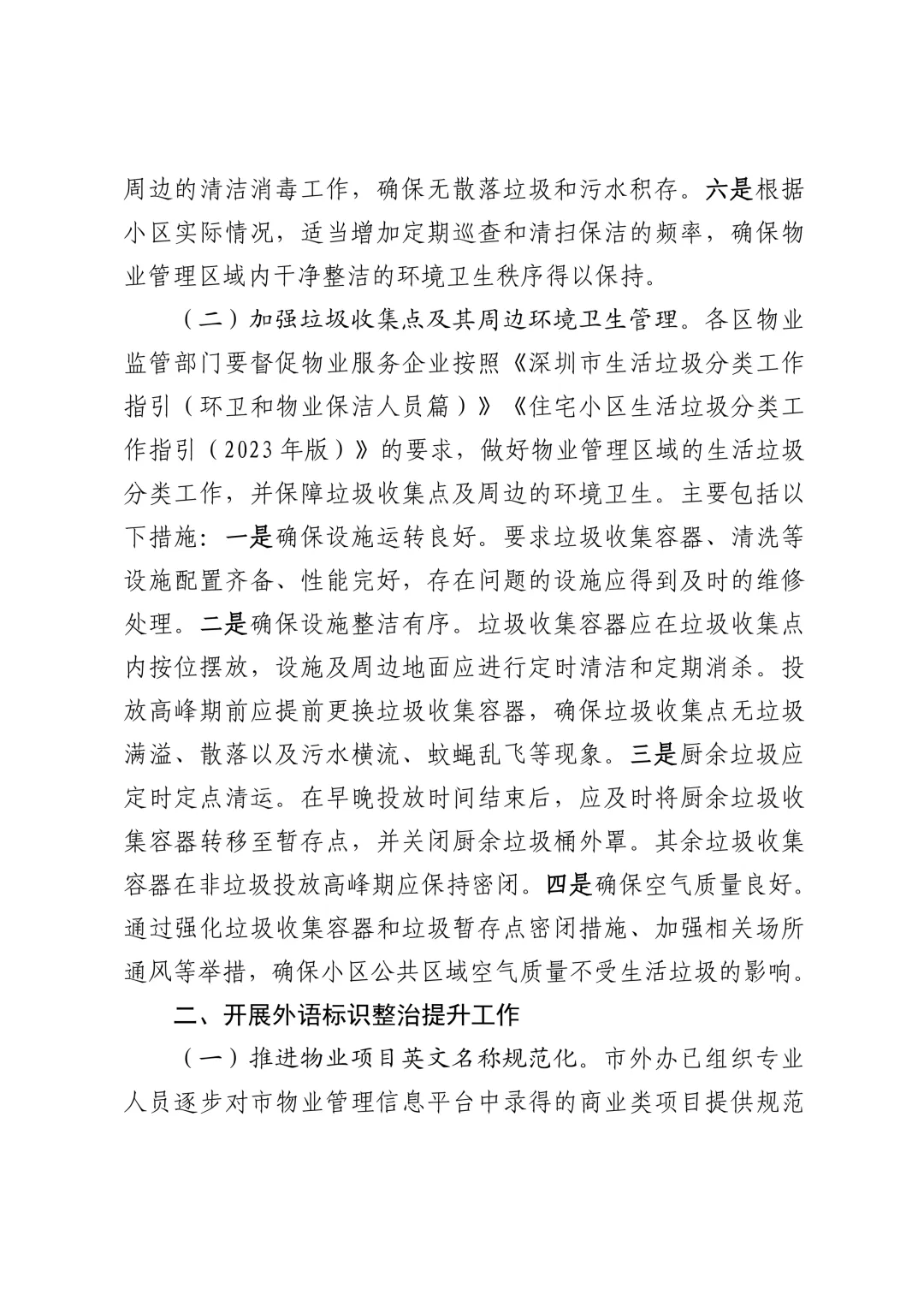 请各会员高度重视、严格按照文件要求,全面强化物业管理区域环境卫生综合整治、病媒生物防制,规范提升建筑物及公共区域外语标识设置,确保环境整洁有序、标识标准规范,以优质物业服务展现深圳良好城市形象,助力 APEC 会议圆满成功。
