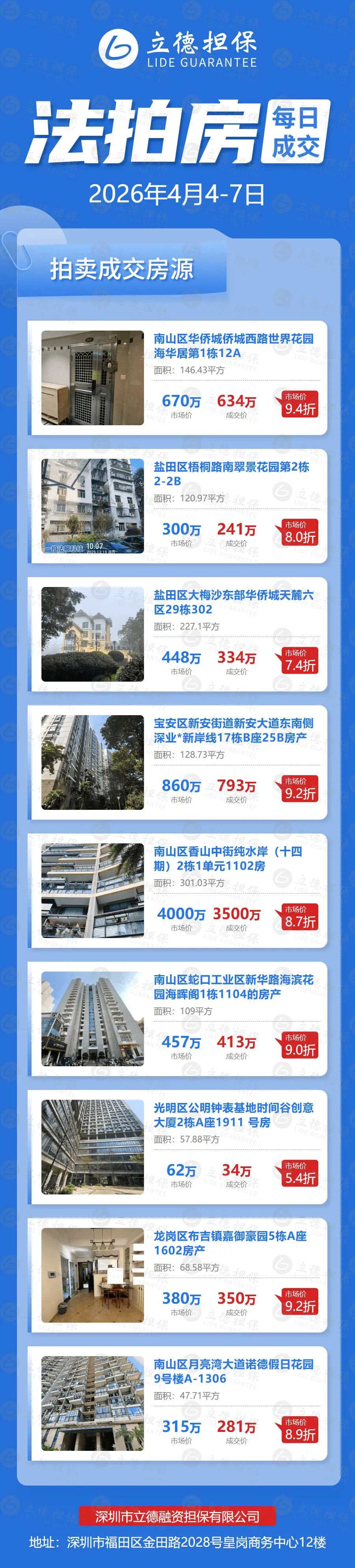 >2026年4月4-7日 | 深圳法拍房每日成交数据