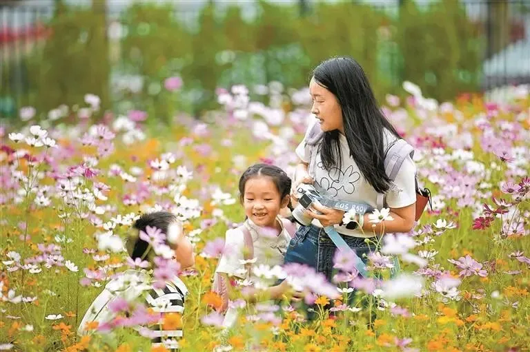 位于坂田环城北路的云宸汇6000平方米的“花海环城”,假日里迎来不少市民打卡。 深圳特区报记者 李忠 摄