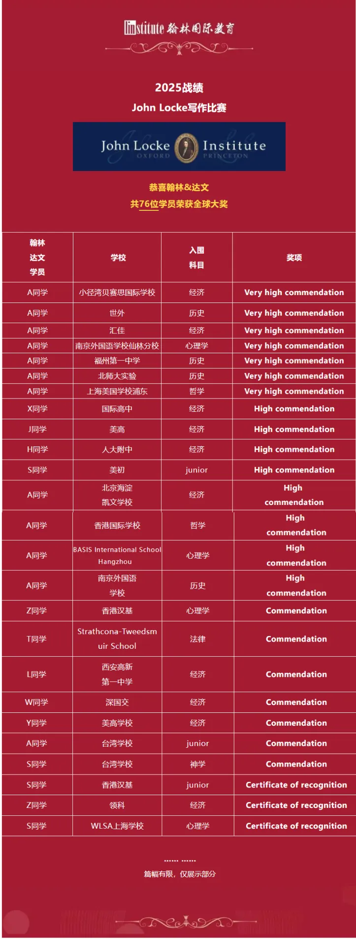 翰林学员在John Locke竞赛中获奖!