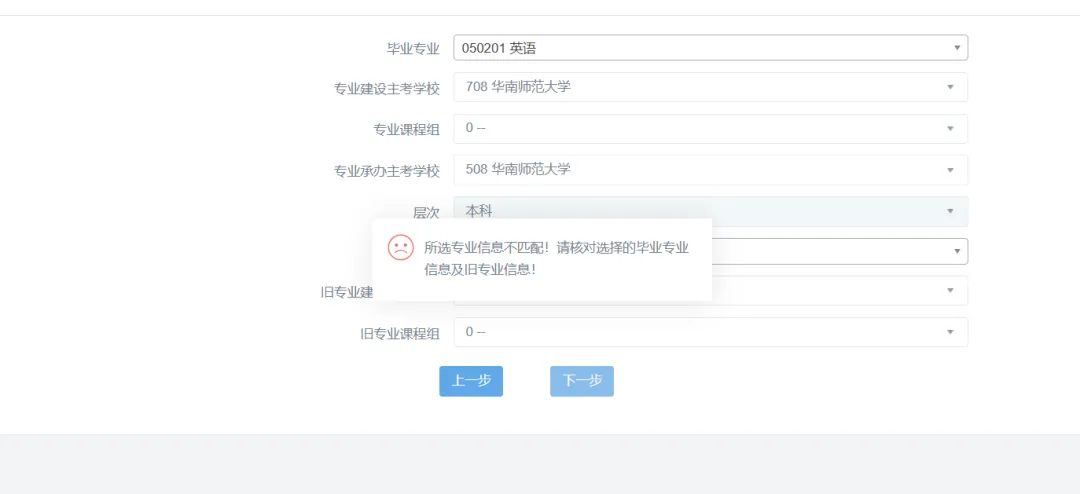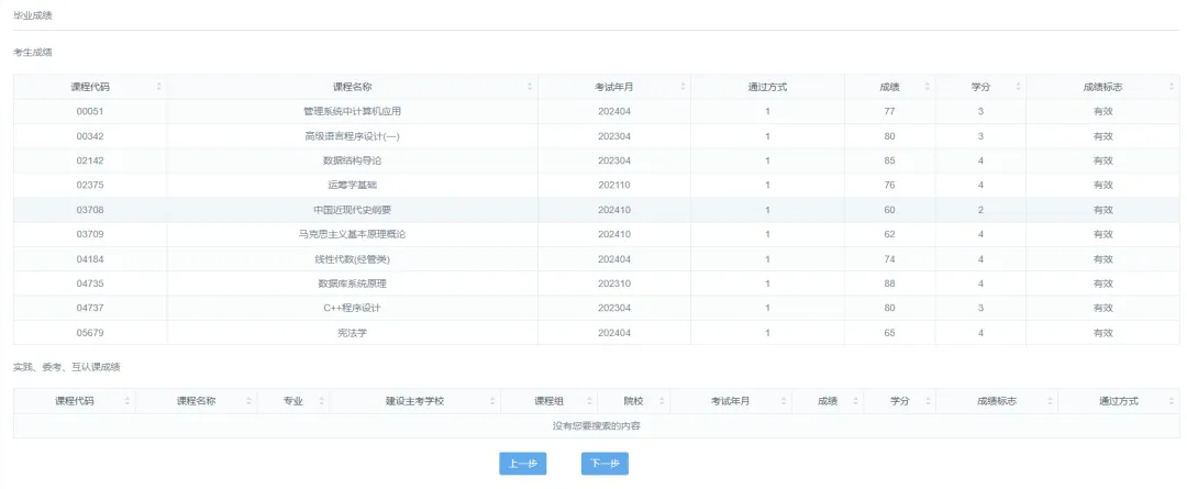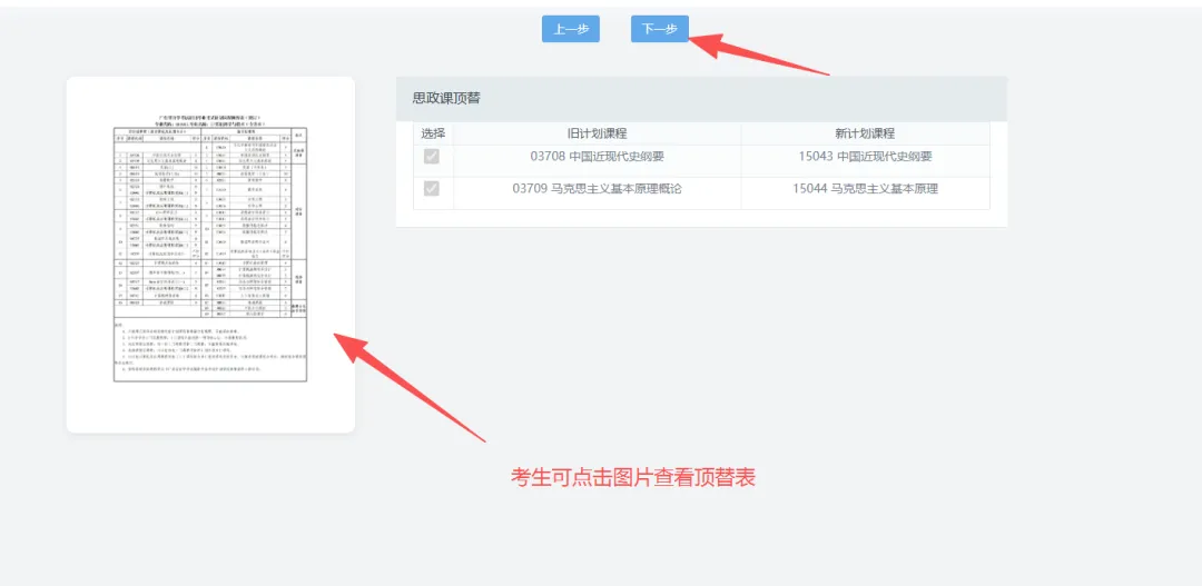 注意事项:该项默认勾选的顶替关系,是根据考生现有成绩系统默认推荐,无法自行勾选及取消。如无成绩,则该列表显示为空,点击【下一步】即可。