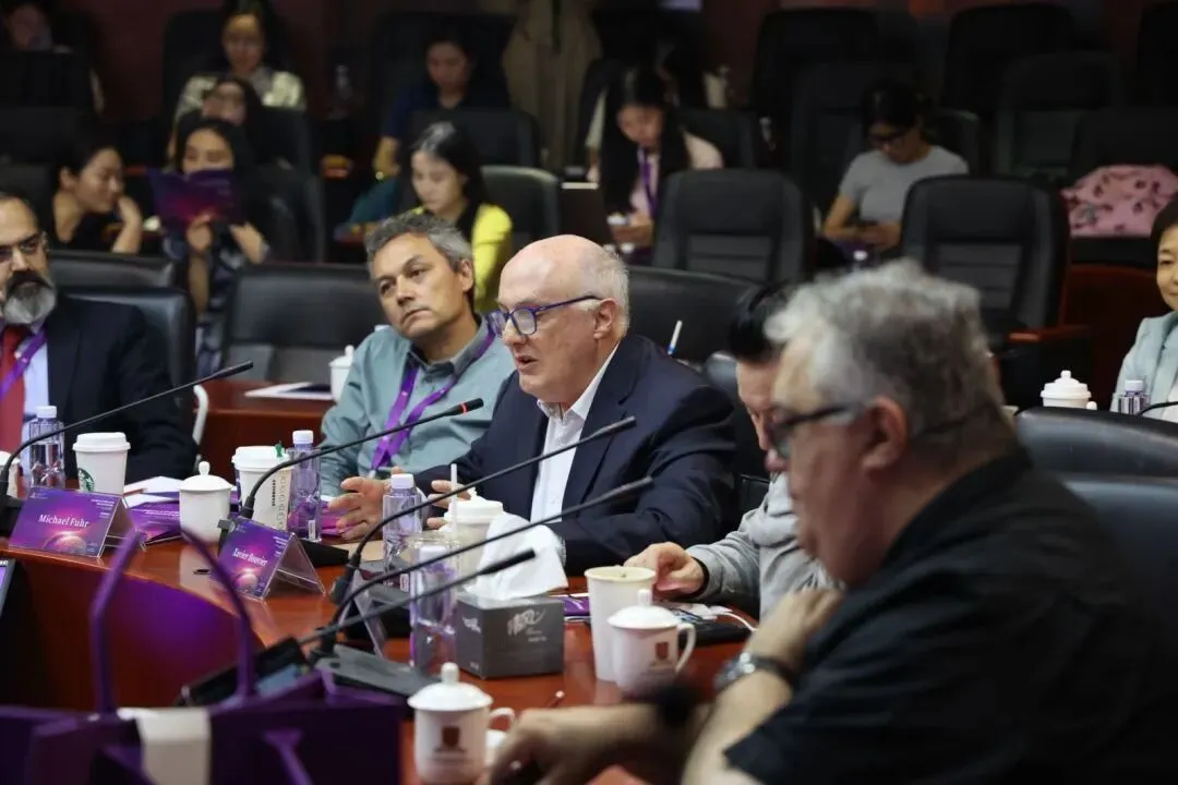 9月15日下午,本次大会的两场学术研讨会邀请了多位来自世界各地的音乐总监、教授、演奏家等进行主题研讨。研讨会围绕"交流与融合"和"传统与现代"两个主题展开,专家学者们阐述了保护传统音乐的重要性,目前遇到的挑战以及解决方案,分享了艺术文化带给所有人的启发等内容。