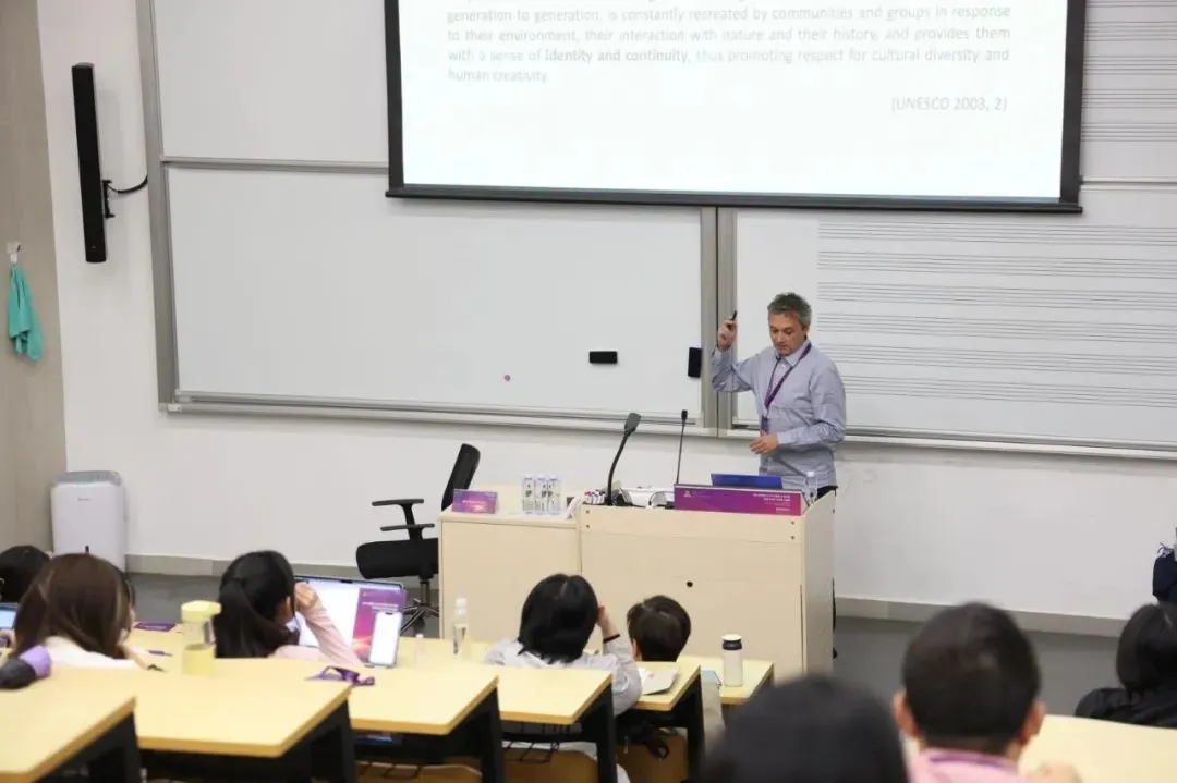 第三场讲座中,由我院张伯瑜教授主持,德国黑德海姆大学世界音乐中心主任Michael Fuhr为大家分享了音乐全球化和非物质文化遗产中民族音乐学的社会职责。