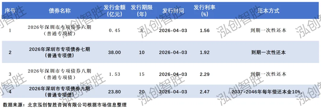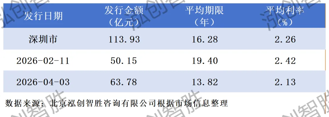 深圳市2026年已发行新增专项债券平均期限16.28年,平均利率2.26%。