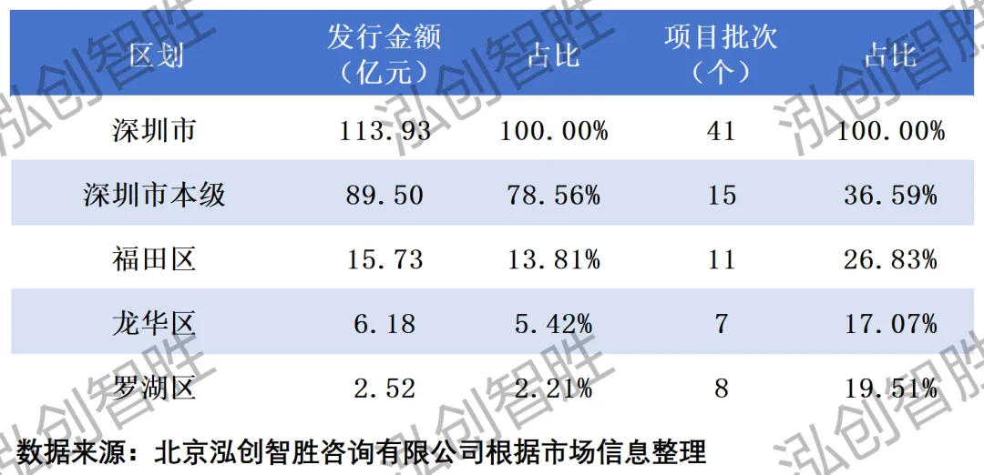 截至2026年4月3日,深圳市发行项目涉及及福田区、龙华区等3个地区和深圳市本级。