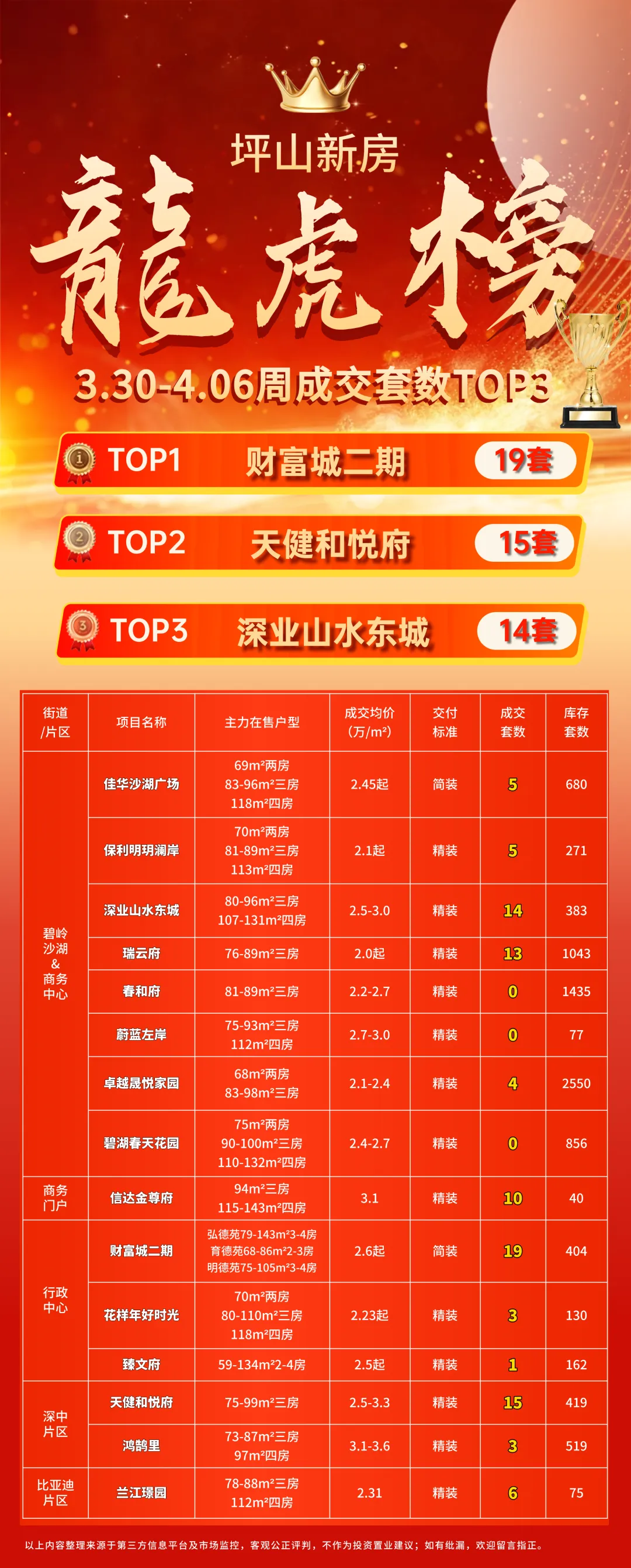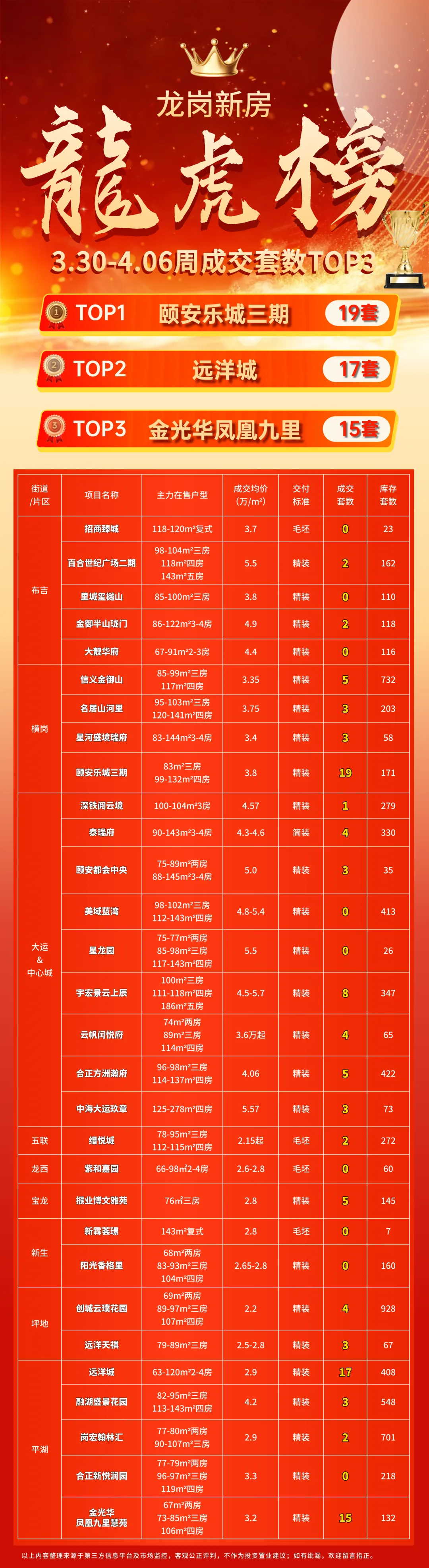 龙岗区住宅新房周成交统计