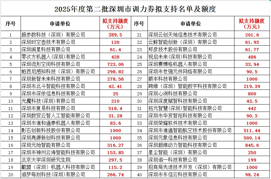 关于深圳市2025年度第二批训力券公示名单
