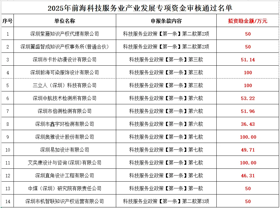 关于2025年前海科技服务业产业发展专项资金项目名单公示