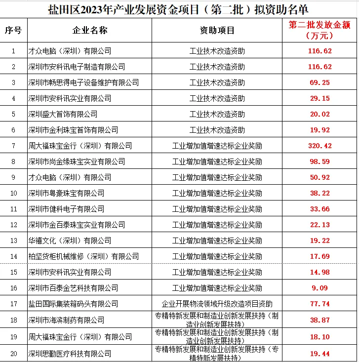 资助总额1.8亿!关于深圳训力券、语料券、保险费、工业技术改造等项目公示