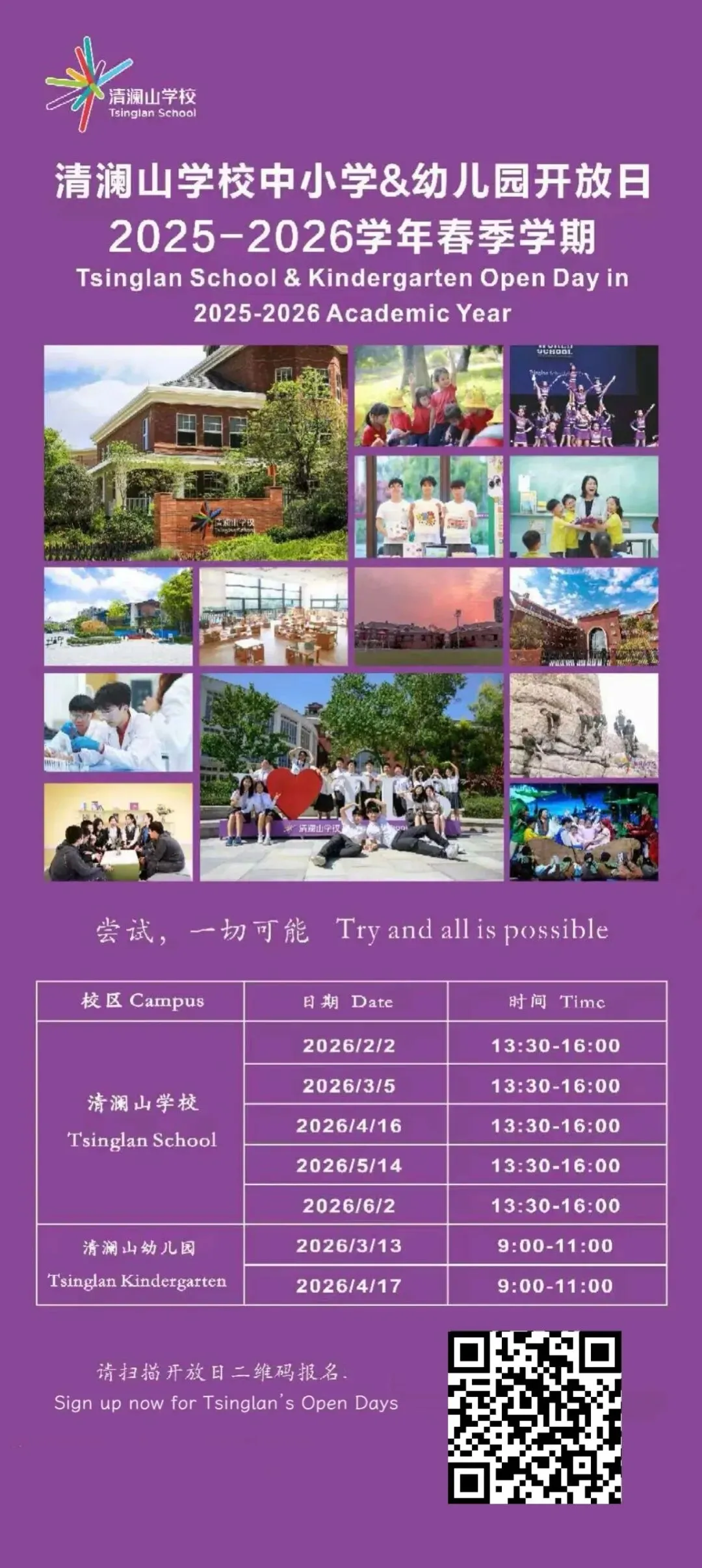 想实地了解清澜山的课程体系、校园环境、师资与升学出口,或是规划入学、插班的家庭,抓紧扫码锁定席位,名额有限,先到先得。