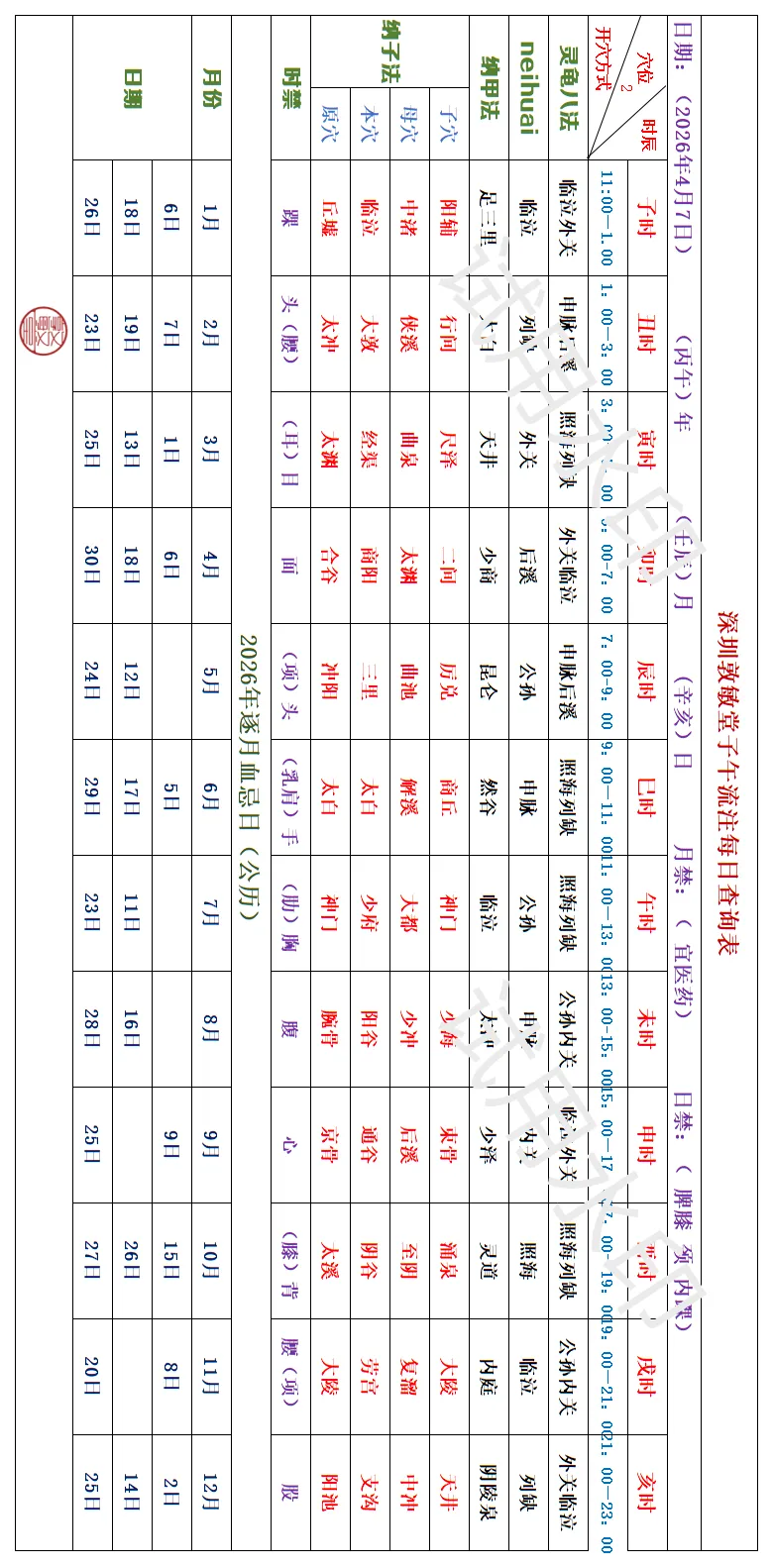 >深圳敦敏堂《子午流注:今日开穴》 2026 4月7日