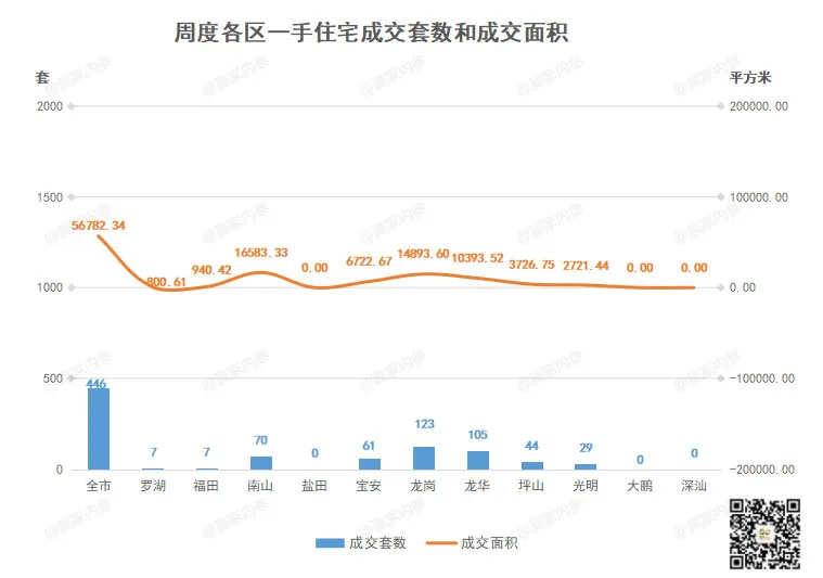 ♢区域成交排名:①龙岗区123套;②龙华区105套;③南山区77套。