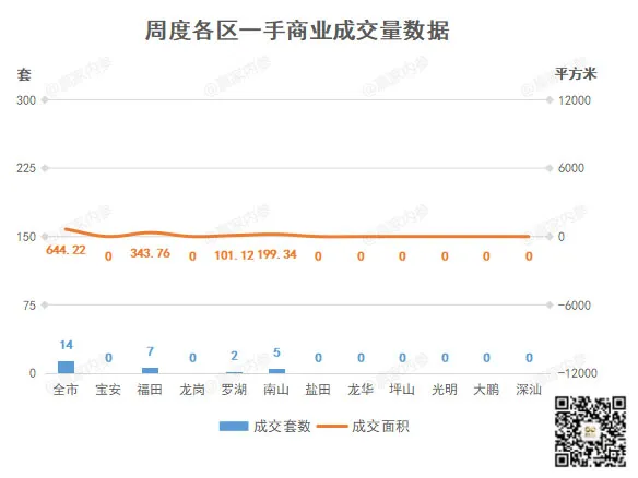 ②商业,成交14套,环比↓48.15%;成交面积644.22㎡,环比↓52.44%;