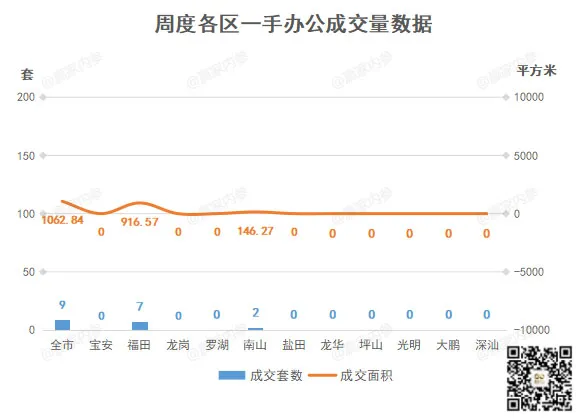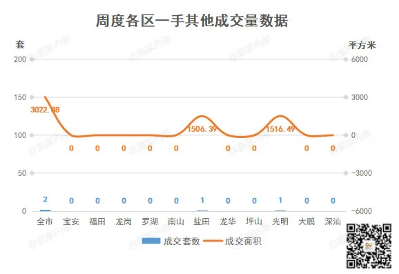 仅光明区、盐田区各成交1套,成交面积1516.49㎡、1506.39㎡