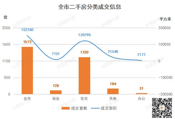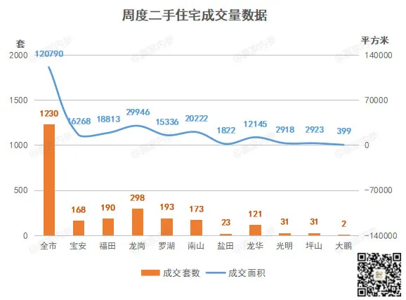根据@赢家内参监测,上周深圳全市二手房成交1573套,环比↓17.94%,成交面积约152260㎡,环比↓5.34%,其中住宅成交1230套,环比↓14.23%,住宅成交面积约120790㎡,环比↓10.16%。