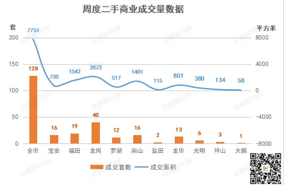 二手房商业成交方面,全市成交128套,成交量前三区域分别是: