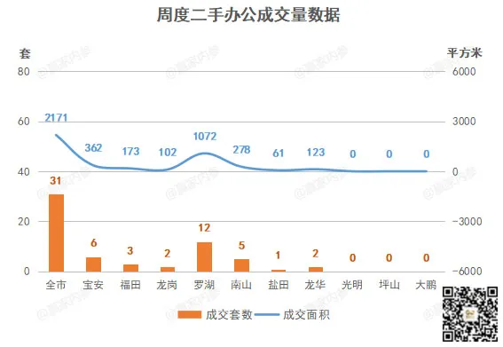 二手房办公成交方面,全市成交31套,成交量前三区域分别是:
