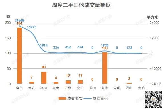 ④其他,成交2套,环比↑100.00%;成交面积3022.88 ㎡,环比↑127.64%。
