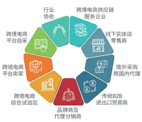 电商平台 / 媒体:B2B/B2C跨境电商平台、海内外零售电商、跨境电商产业园区 / 综试区、招商政策/项目推荐、投资环境展示、直播平台 / 设备 / 配套部件、大数据、人工智能和云计算、跨境电商协会、独立站、专业媒体等;