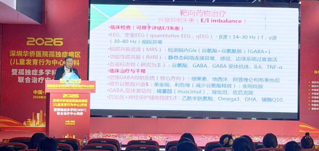 “对孤独症继续仅从精神心理层面反反复复地分析来分析去,揣测来揣摩去,这样已经分析了80多年至今却依然没有丝毫根本性的进展和转变,去年《细胞》杂志最新研究证实,孤独症本质是脑物质基础病变,78%的患者存在神经兴奋-抑制失衡。”中国康复医学会儿童康复专业委员会主任委员唐久来教授在揭牌仪式上指出,“传统以行为干预为主的模式已触达天花板,必须从生物学层面寻找突破口。”