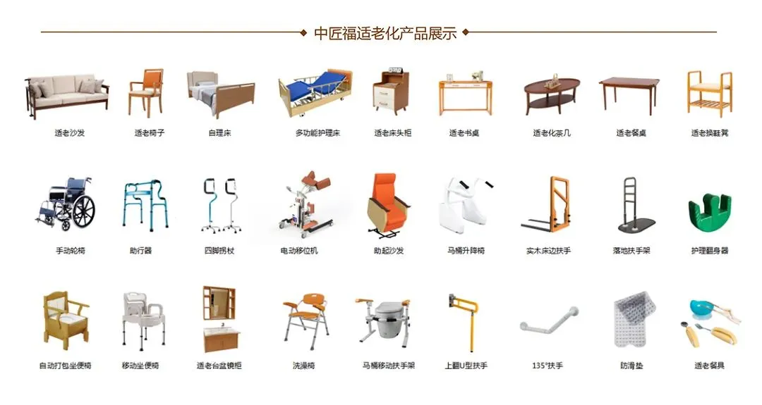 “中匠福”成立于2004年,公司总部坐落于国家重点项目规划的广州民营科技产业园内,53000平米生产基地,16年来一直致力于研发、生产、销售、服务一体的适老化整体配套产品,目前企业已通过ISO9001、OHSA18001认证、十环认证等,并荣获超过200多份权威证书,是国内屈指可数的适老化全产业链综合服务型的高新技术企业。产业已经覆盖了适老化家具、适老化产品、适老化改造、养老运营服务等行业领域,通过整合各产业链的资源优势,提供战略咨询、整体策划运营、适老化设计、养老产品供应等闭环式养老产业综合服务,至今已经与超过1000+养老机构达成合作,拥有10万+居家适老化改造案例。