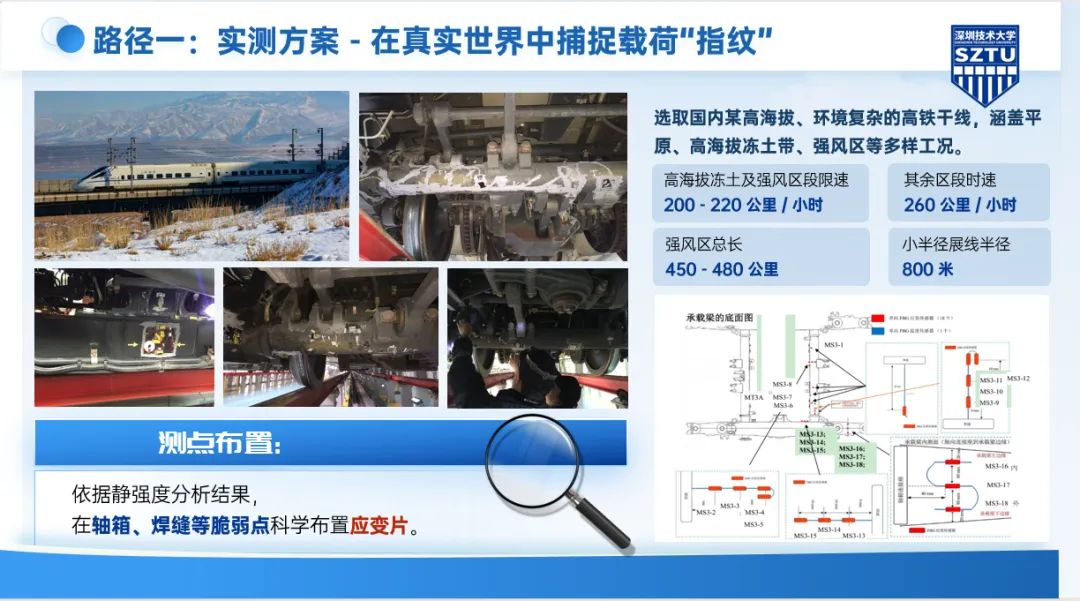 “仿-测”双路径数据驱动: 系统不仅构建了 400km/h 极限工况下的多体动力学仿真载荷谱 ,更深度融合了实际线路的动车组应变测试数据 。