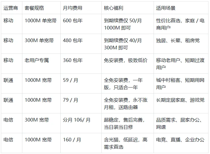 👉 核心权益:全免安装费 + 永不涨月租 + 送千兆路由器!