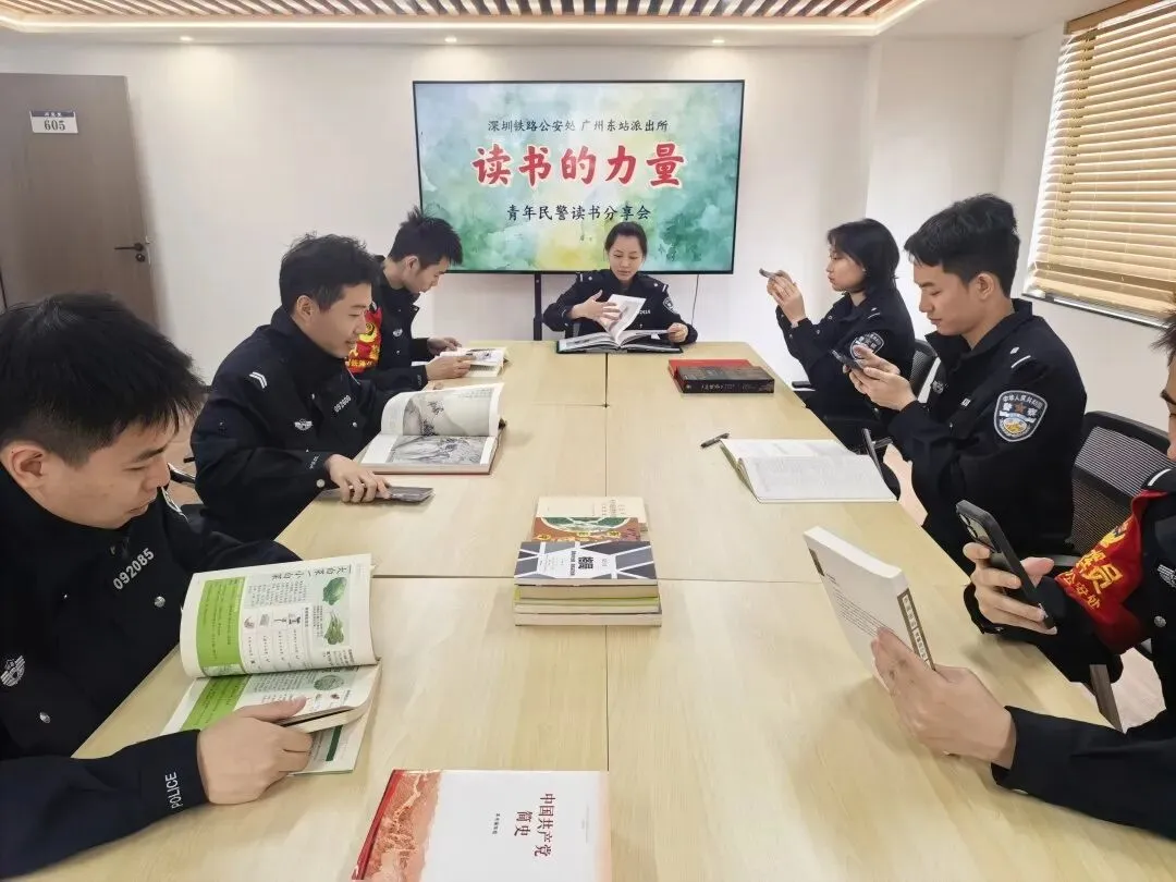 为推进青年民警思想政治建设,引导青年民警在书香浸润中坚定理想信念,广州东站派出所组织开展 “读书的力量” 主题读书会。读书会上,青年民警围绕政治理论、党史警史、经典著作、法治书籍等作品内容,结合自身学习感悟与从警经历,逐一交流思想体会,紧密结合执勤执法、线路防控等本职工作,谈认识、讲体会、找差距、明方向。