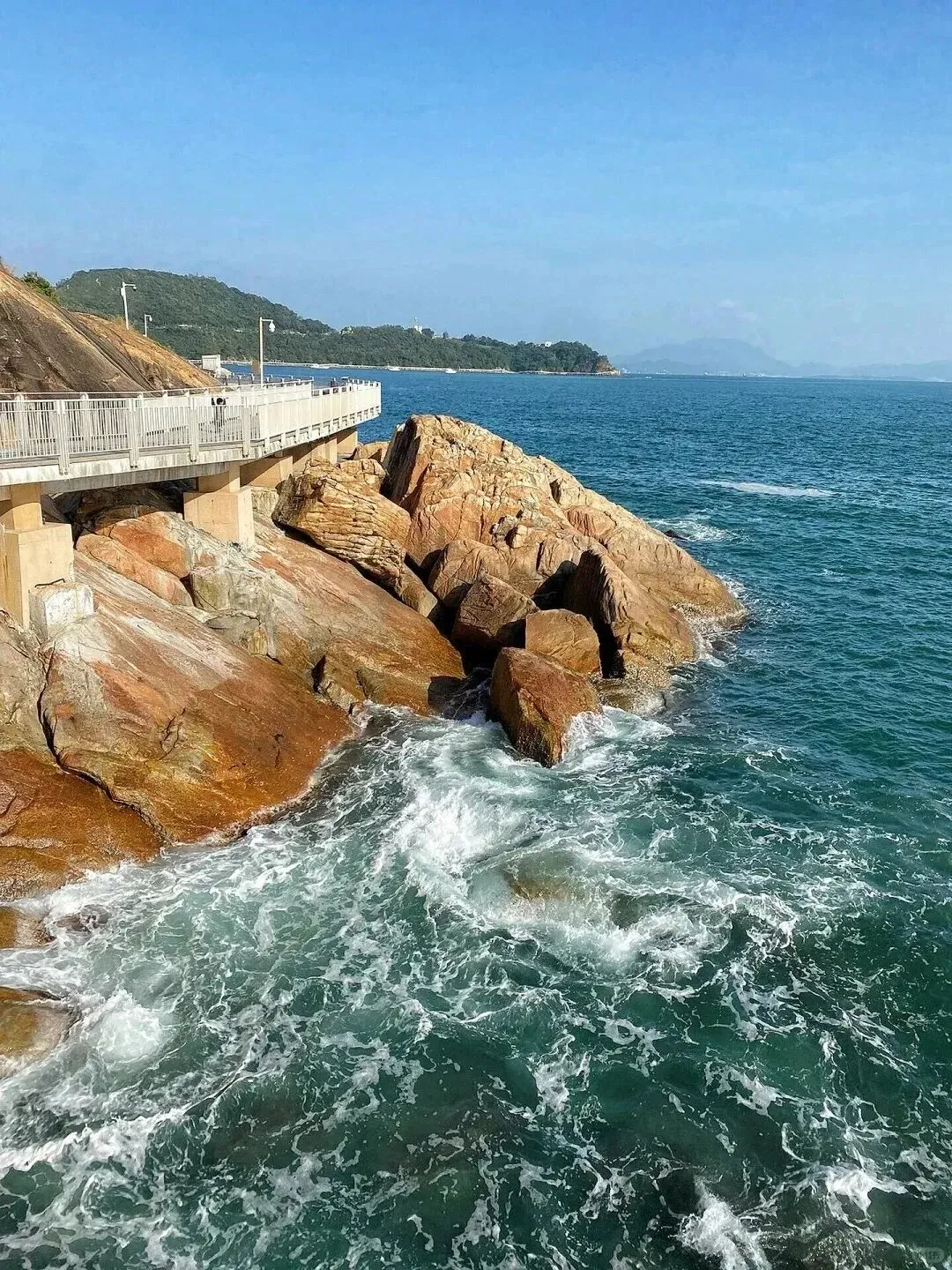 14:00 抵达盐田海滨栈道入口,开始徒步精华段5公里,观赏蓝天碧海的漂亮海景。