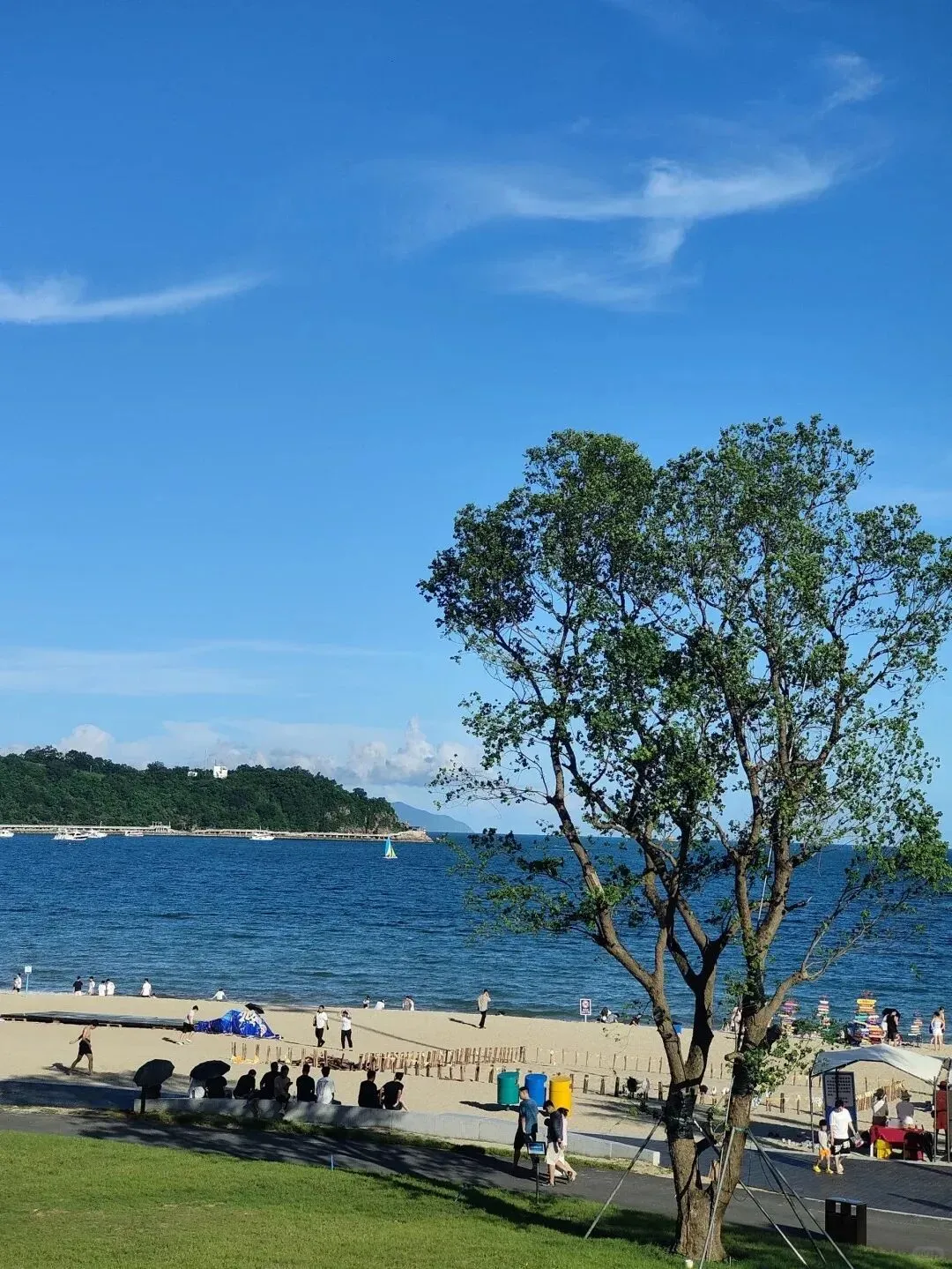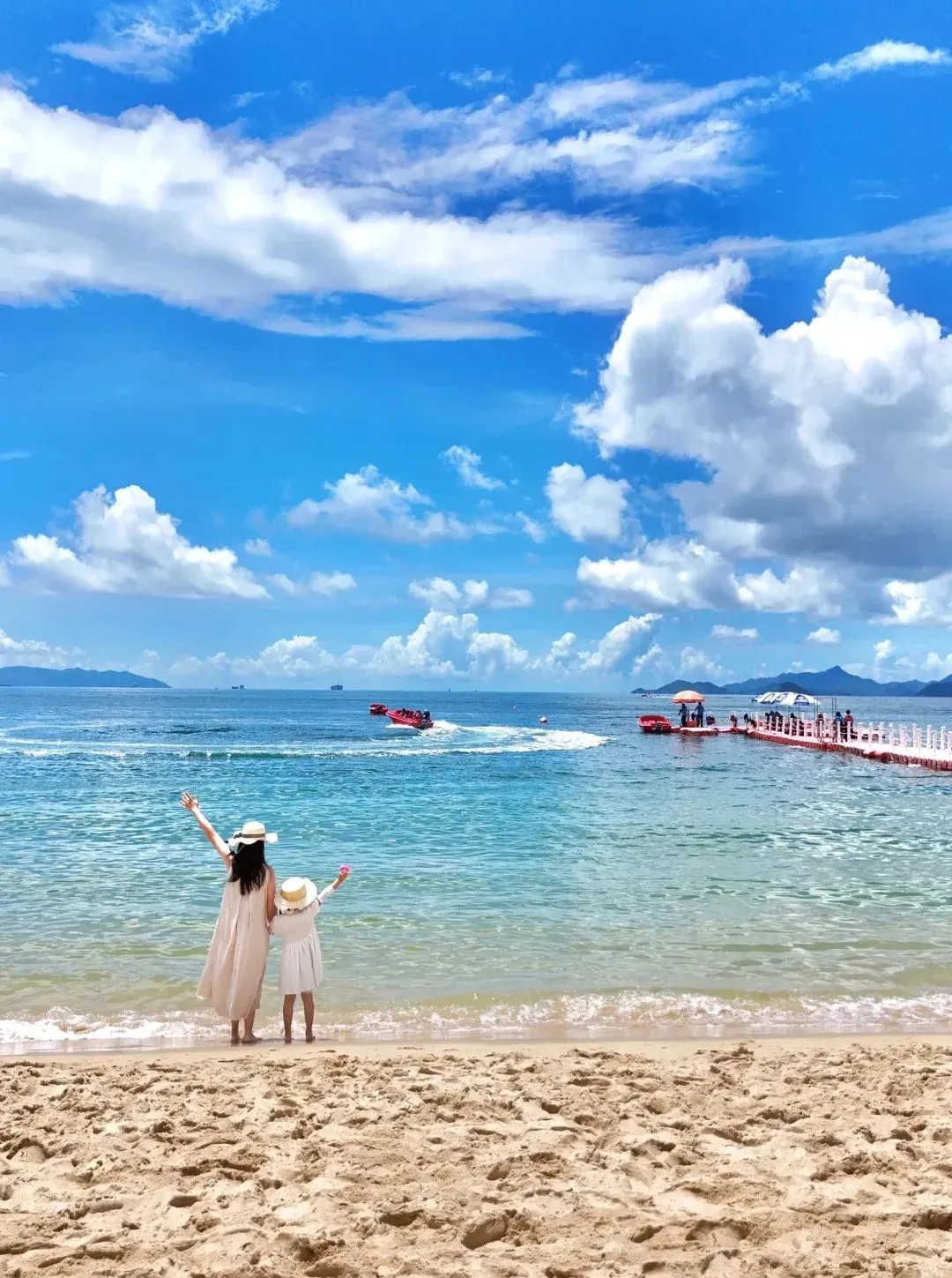 看着海滩上悠哉悠哉的人们漫步在这干净的沙滩上下去踩踩水,沿着海岸线嬉闹宛如漫步在地碧海蓝天里