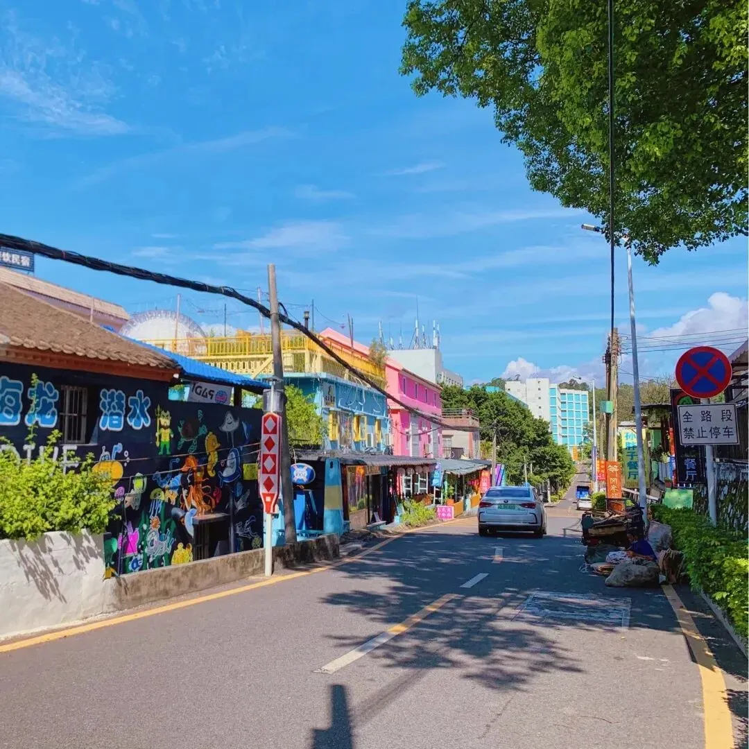 11:00 抵达官湖村,开始浪漫之旅,记得穿上漂亮的服装,轻装上阵,背上相机,带上好友,穿街走巷,这里到处充满了文艺气息,基本上每栋房子的颜色都不一样,门口、门帘、涂鸦、摆件……每一处都体现着浓浓的日式小清新。