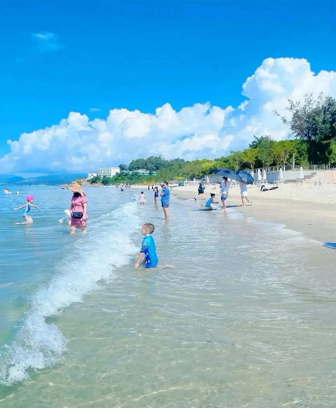 13:00 来到官湖的海边,这里沙子细腻,沙滩很长,海水清可见底,玩沙戏水的好地方。