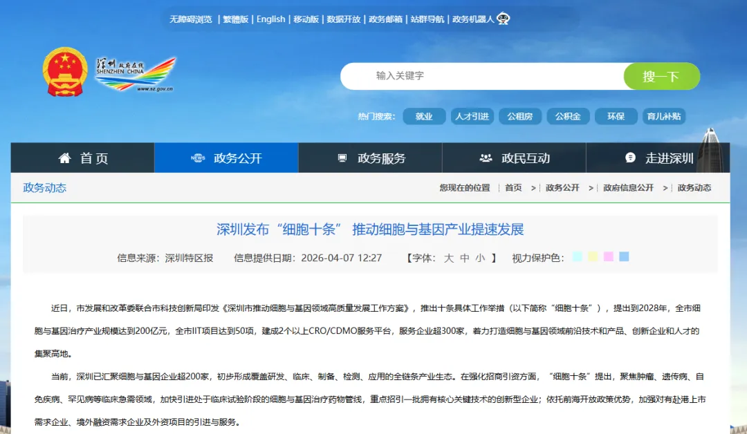 4 月 3 日,深圳市发改委联合市科技创新局重磅发布《深圳市推动细胞与基因领域高质量发展工作方案》(简称 "细胞十条")。