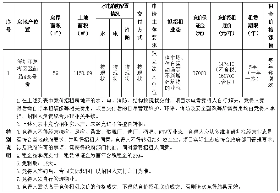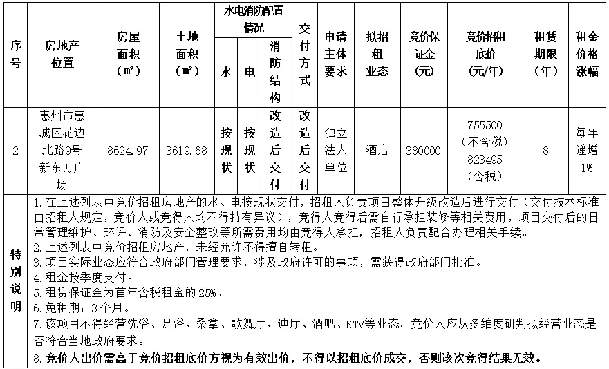 深圳、惠州优质资产招租及公告