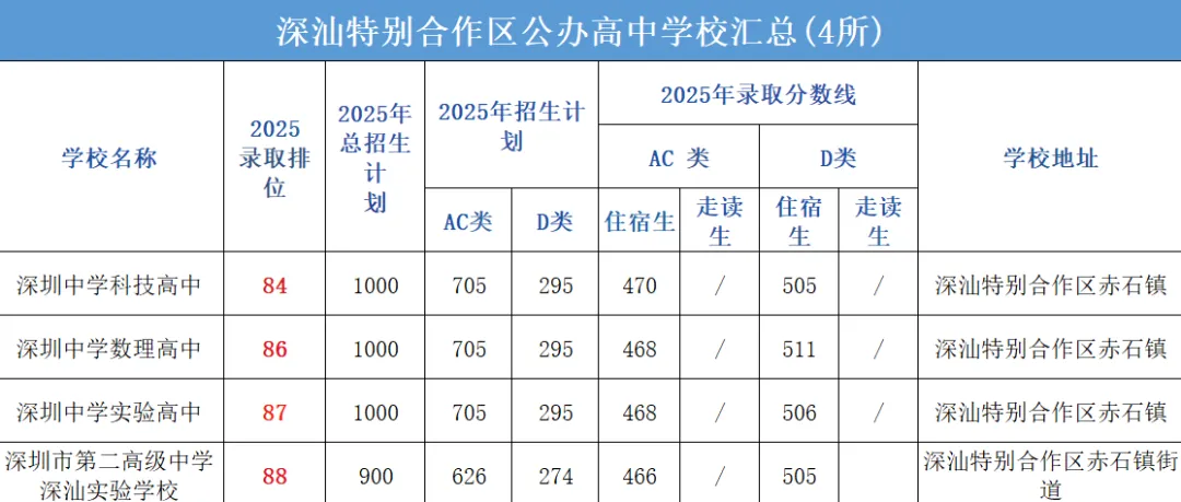 需要注意的是,深汕合作区的学校都没有走读生计划,只有住宿生计划,但整体招生体量也比较大,在自主招生和指标生上可能存在一定的“降分空间”,对应分数段或冲公办的同学可以多加关注。