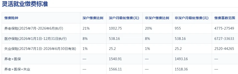✅ 深圳灵活就业社保最低缴费标准