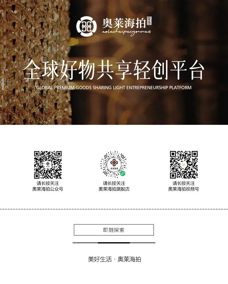 奥莱海拍,是深圳南山 1400㎡的高端共享创业平台,主营欧洲直采奢侈品、中国人保合作滋补品(均经中检检验),同时联合中联财富、香港文明教育集团,为合伙人提供低至三折拿货、每周多场高端沙龙等全方位赋能,助力女性轻创业、实现自我成长。