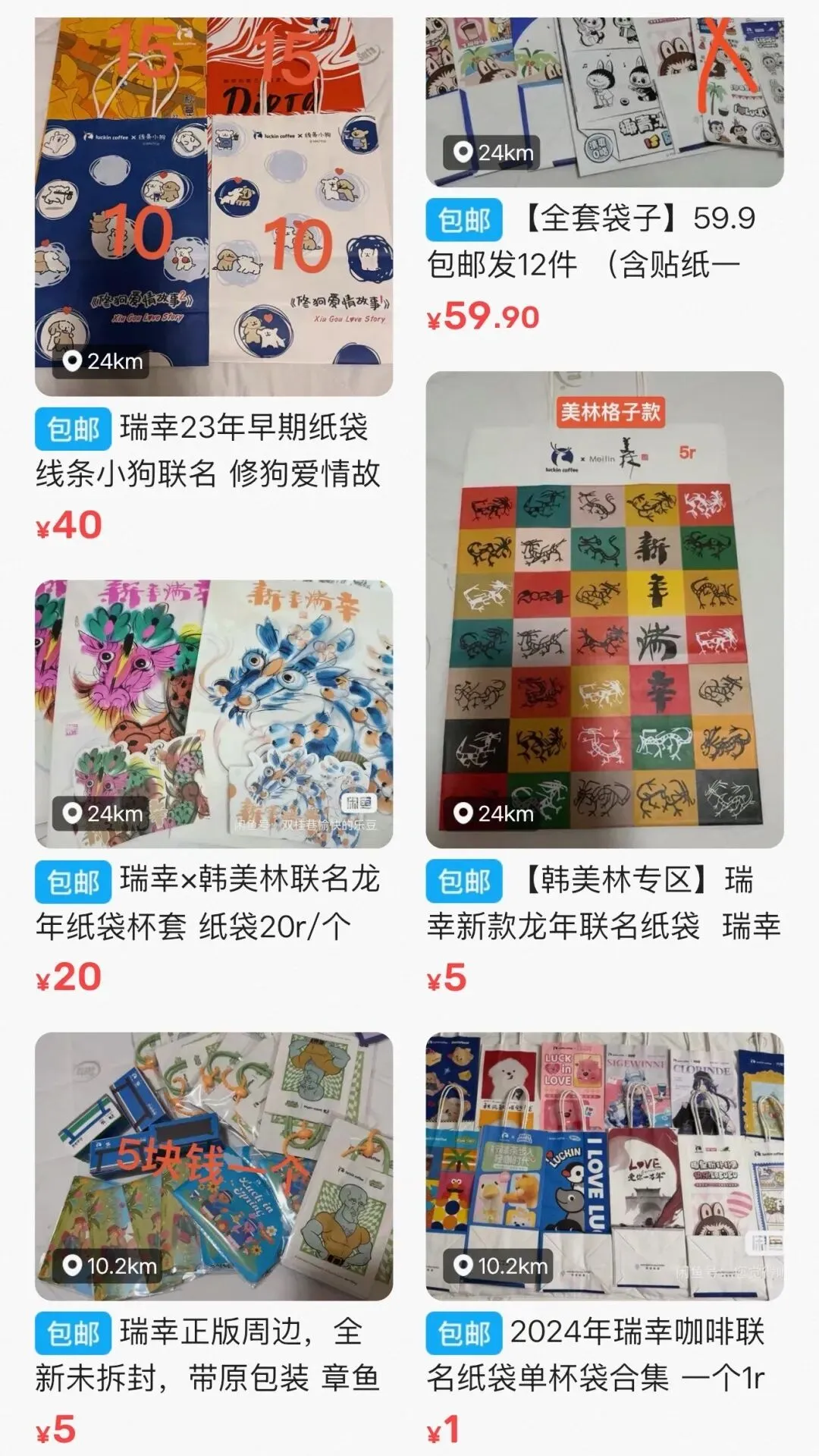 她也成功出售过纸袋,“有人问就出,花钱买的收钱,免费得的付邮送。现在为止,也就卖过茶理宜世、瑞幸、RAMA,1到25块不等。”