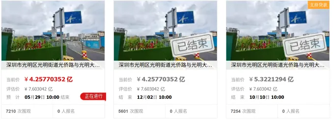 近日,深圳市光明区光明街道光侨路与光明大街交叉口东侧的土地使用权及在建工程上架阿里资产司法变卖