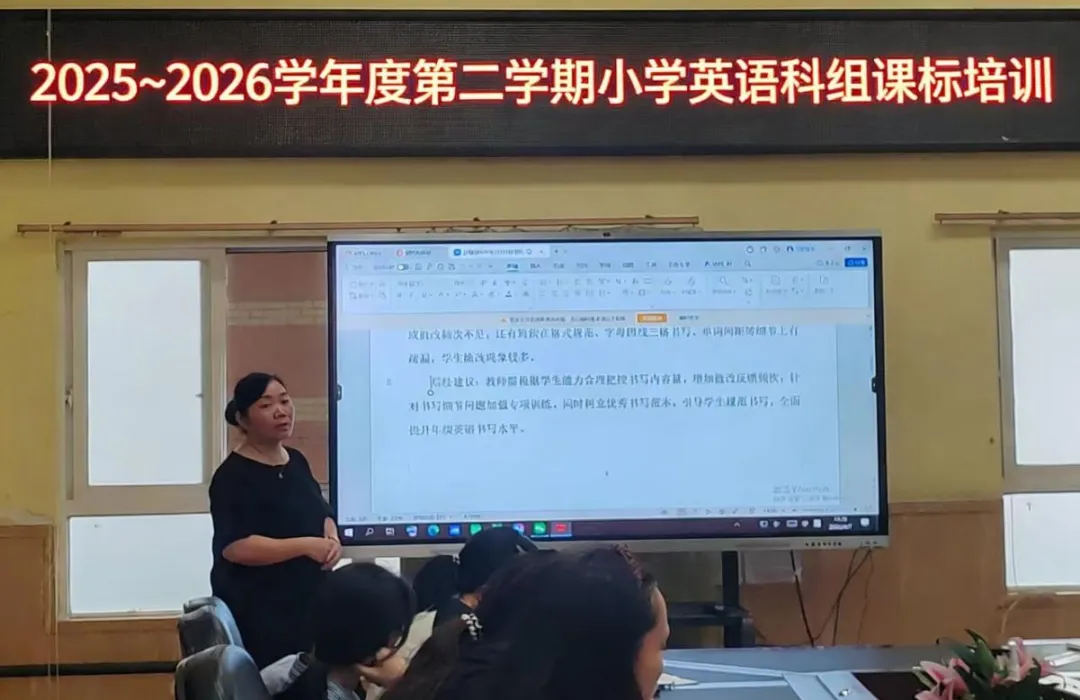 此次活动既有新课标的理论引领,又有扎实细致的工作部署,让全体教师学有所获、行有方向。未来,小学英语组将以此次活动为契机,把新课标理念融入日常教学,以更饱满的热情、更务实的作风深耕课堂,在李洁珍主任的带领下同心协力、扎实奋进,不断提升英语教学水平,助力每一位学生乐学善学、成长成才!