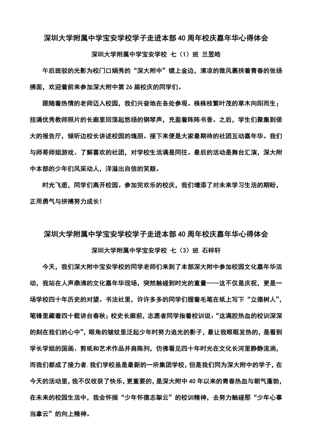 四秩芳华,青春正好|深圳大学附属中学宝安学校学子走进本部40周年校庆嘉年华