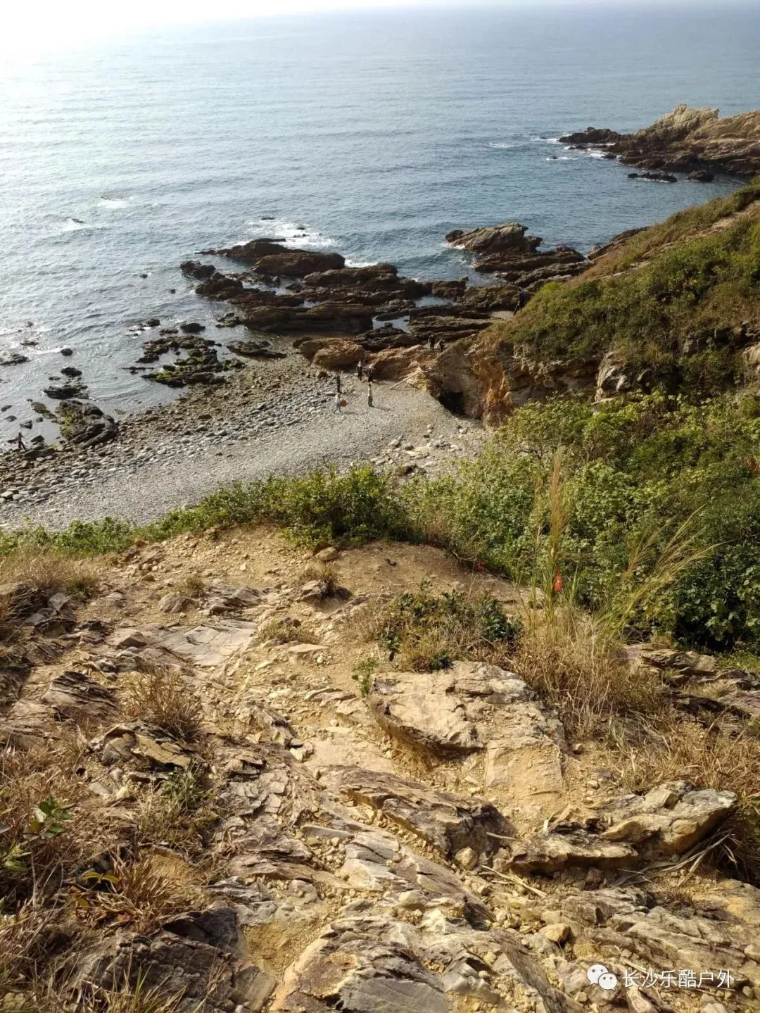 08:00整装出发,开始穿越之旅.适时择地路餐,“黑排角”海岸线位于广东惠州地区,这条海岸线穿越全长约14~15公里。只因礁石是黑色的,被驴友起名为“黑排角”。这里的沙滩游玩的人比较少,每一个海滩都属于我们团队专享,光着脚丫,带上铲锹和捞网,海蟹就会跟你回家,沙滩上的漂亮的海贝随处可见,活的海贝也不少,很多时候都能看到海水冲击大石溅起的巨大的白花海浪,又能见到连绵不断的层层鱼纹型长浪。
