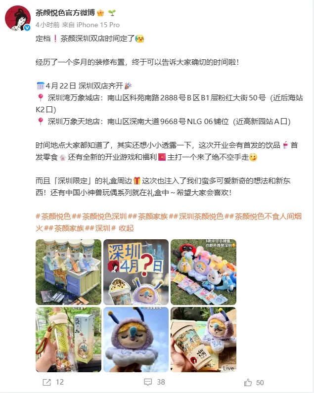 据透露,4月22日开业当天,门店除了常规菜单,还将推出首发的饮品和零食。对于喜欢收集周边的消费者,茶颜悦色这次准备了专门的「深圳限定」礼盒,里面包含了中国小神兽玩偶系列等新奇物件。此外,门店还策划了全新的开业游戏和福利活动。